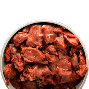 Diced bison stew meat.